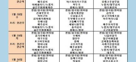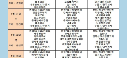 <주간식단표> 2026년 1월 19 일 ~ 1월25일