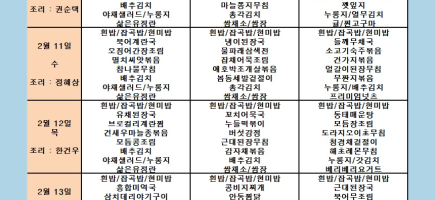 <주간식단표> 2026년 2월 9일 ~ 2월 15일